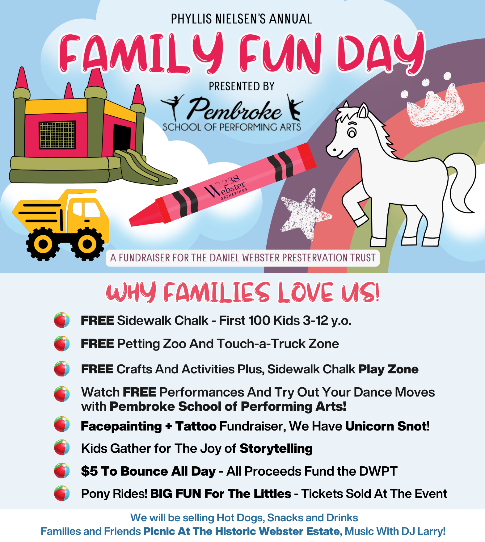 This special day holds a deeper significance as it pays tribute to Phyllis Nielsen, a former board member of the Daniel Webster Preservation Trust, who played a pivotal role in conceptualizing this beloved community event. Join us for a day filled with laughter, fun, and meaningful connections!